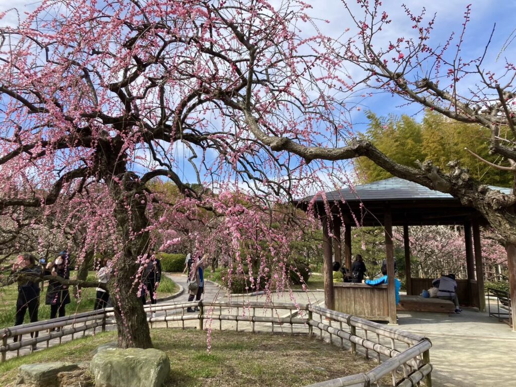 日本庭園の梅林には40品種・80本の梅があり、自然文化園に比べて人通りが少ないので、じっくり鑑賞したい方にはこちらもおすすめです。