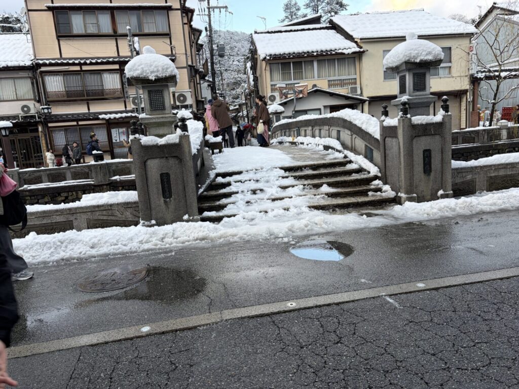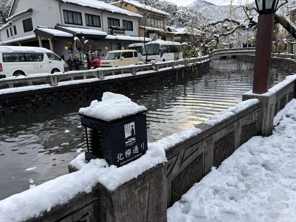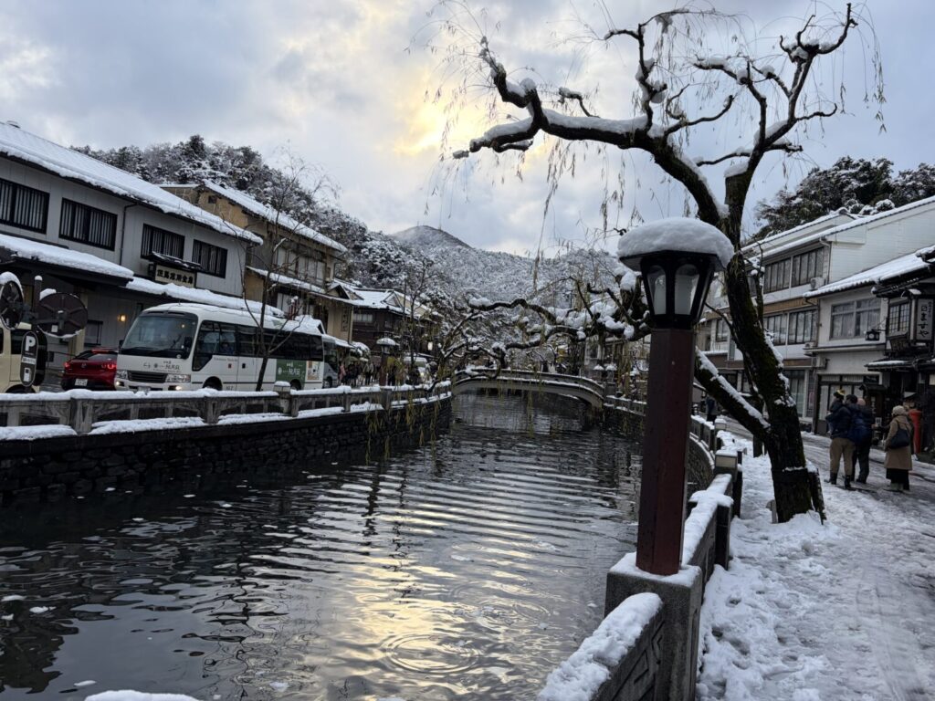 城崎温泉街は冬が寒く雪が多い