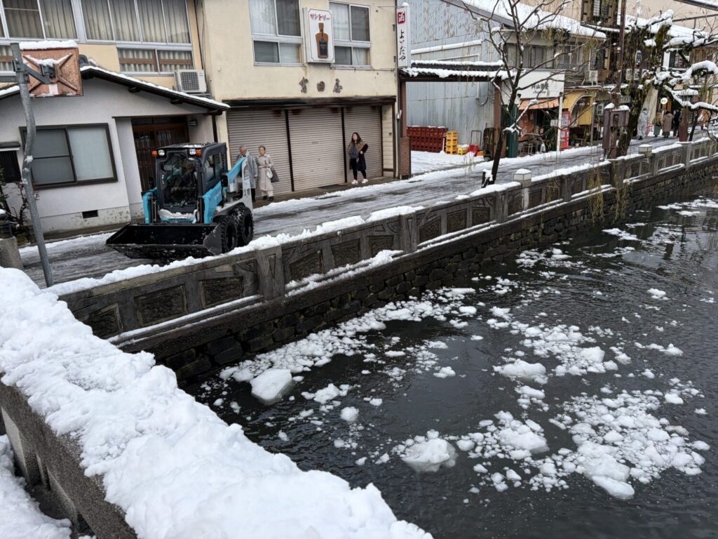 とはいっても、観光地だけあって、いつも通りは賑やかですし、雪がたくさん降っても暗くて怖いということはありません。そんな雪国らしさが感じられる景色はそれだけで非日常的。