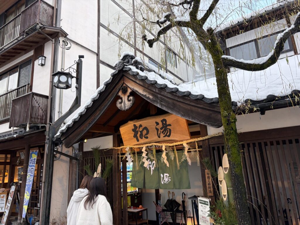 城崎温泉のお楽しみと言えば、7つの外湯巡りです。こちらがそのうちの1つ柳湯です。7つの外湯は城崎温泉街のあちこちにちりばめられて点在しているのですが、端から端まではおおよそ歩いて30分~1時間で行ける距離です。1か所約800円の入浴料がかかりますが、1日入浴券が1500円なので、2か所以上の外湯に行く場合は1日入浴券が断然お得です。