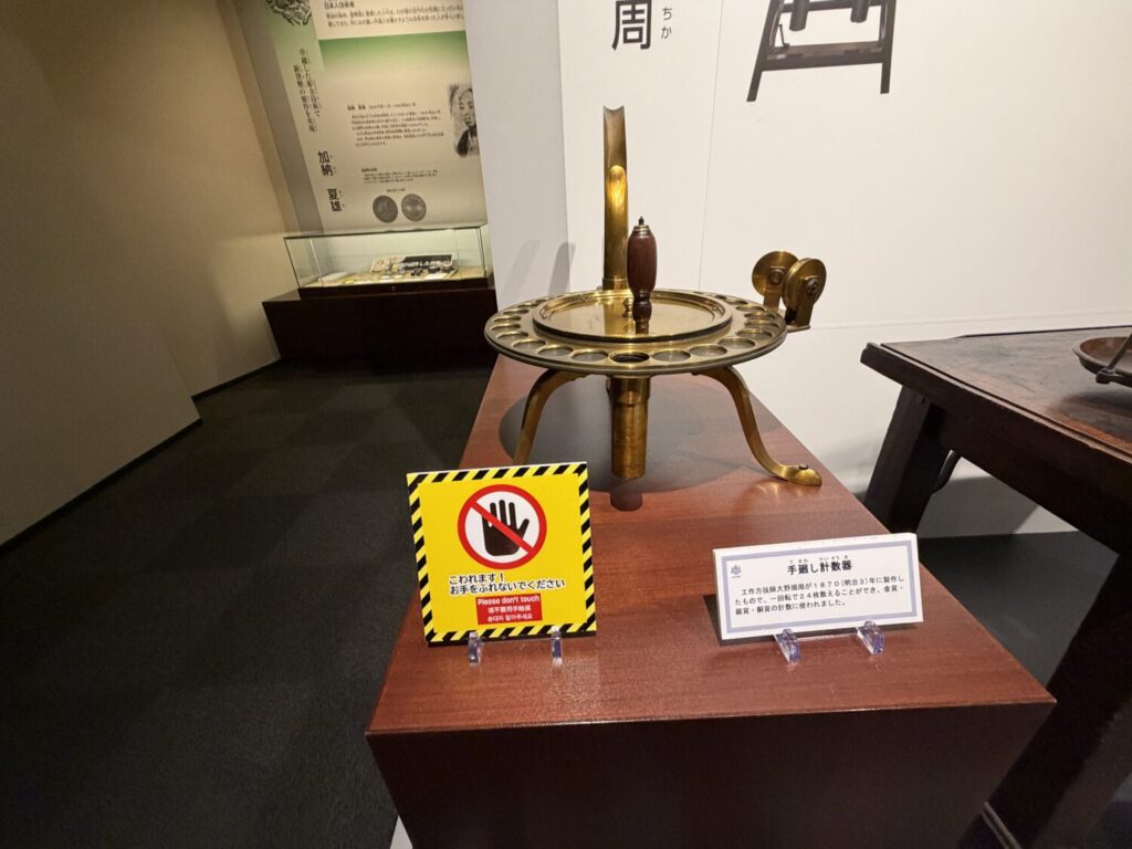 大量生産されるようになったら、必要になるのが数を数えること。こちらはそのための手回し計数器です。1回転で24枚数えられるそう。気が遠くなりそうな回数を回さなければならなかったのではないかと思います。