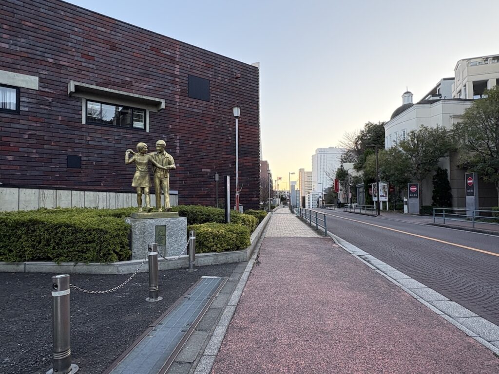 まっすぐ進むと、歩道沿いには銅像があります。