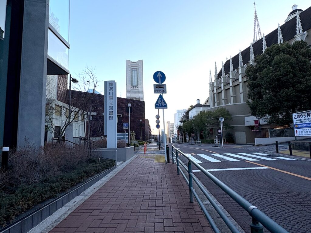 左側は「神奈川県立図書館」です。