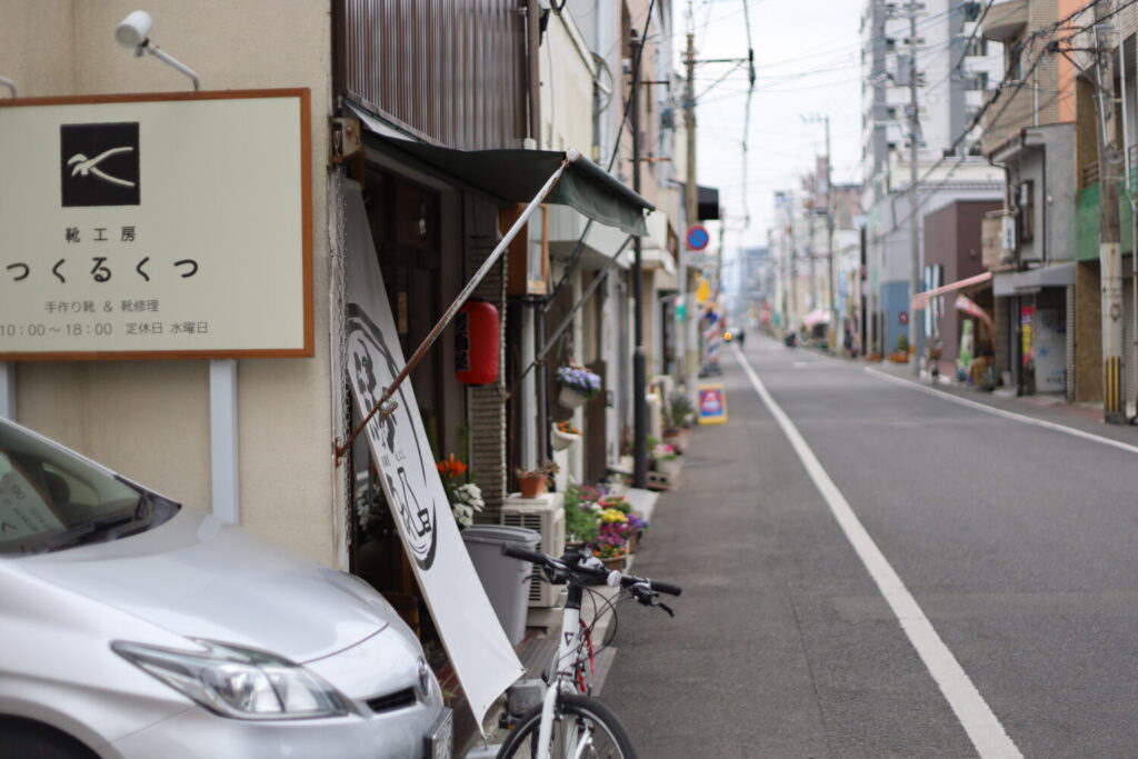 愛媛県松山市平和通にある靴工房「つくるくつ」。