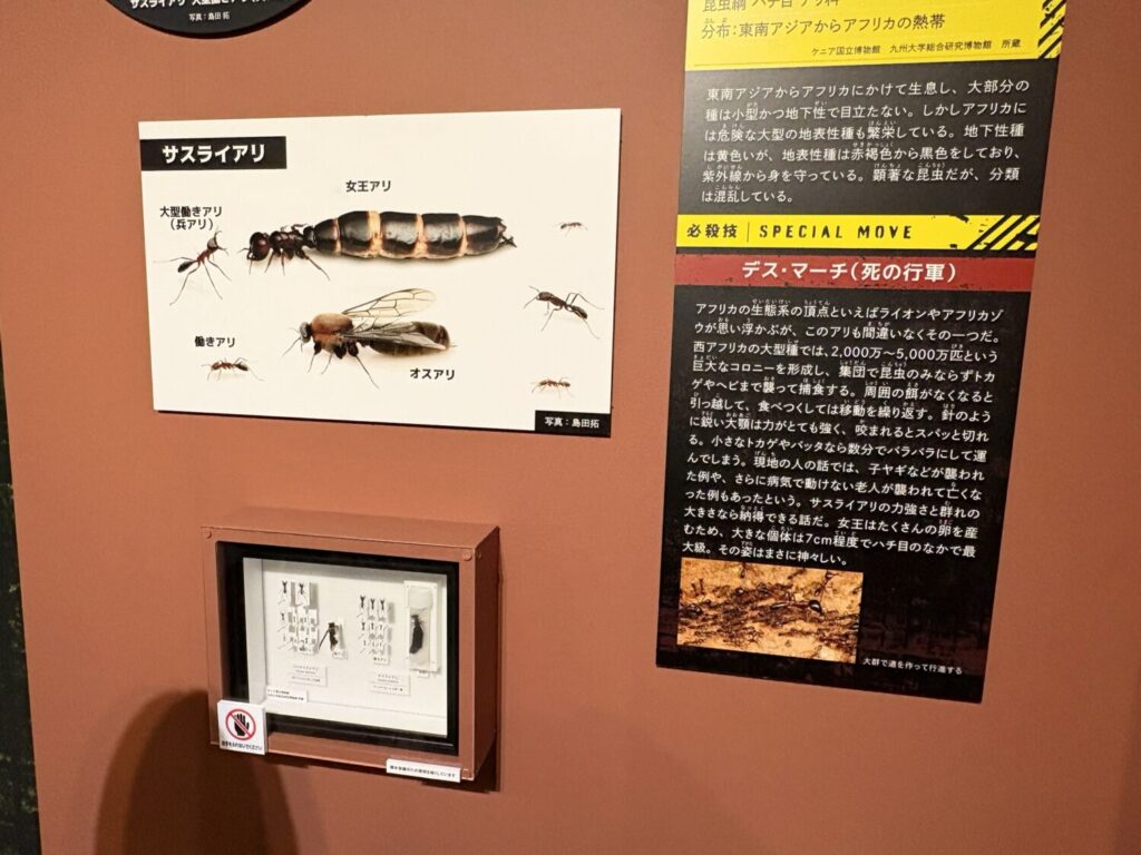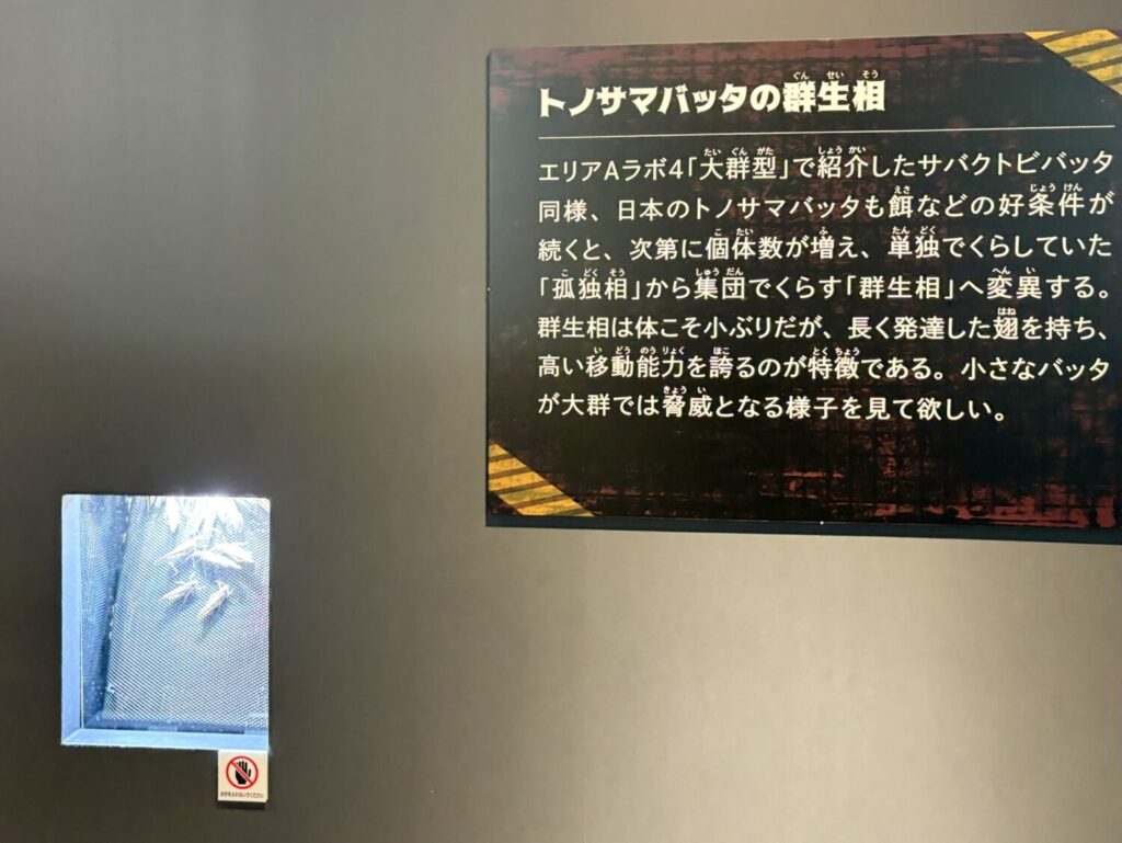 ほかにも、トノサマバッタの群生相の展示などもあり、生き物好きなら楽しめること間違いなしの展示がたくさん見られました。