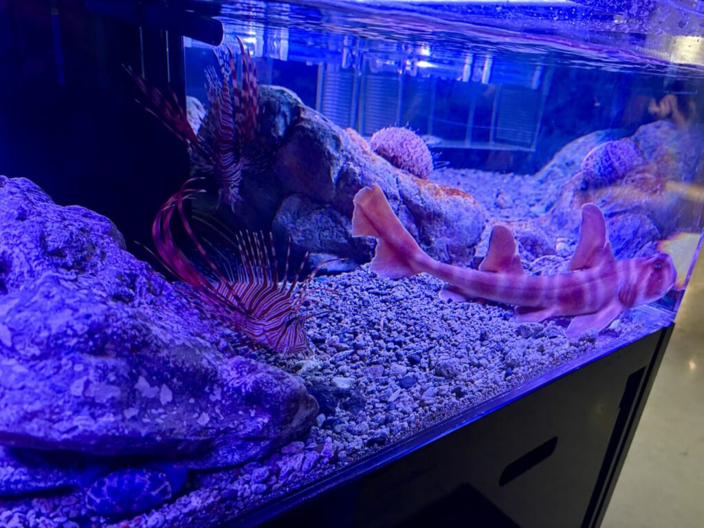 ハナミノカサゴやドクウツボ、ガンガゼなど、水中の危険生物たちが一堂に会する水槽は必見。