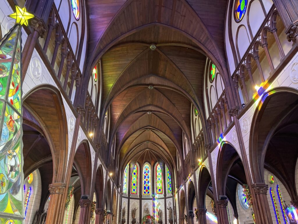 聖ザビエル天主堂も、博物館 明治村の人気スポット。教会内のステンドグラスの美しさは、本当に圧巻です・・・!幻想的な世界を堪能できますよ。