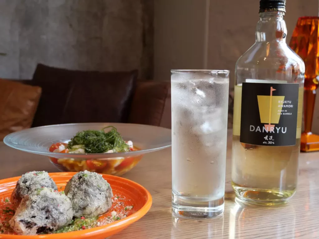 「暖流SHIP 30度」は、バーボンづくりで使用したオーク樽で貯蔵・熟成させた古酒をブレンドした泡盛。オーク樽由来のウイスキーのような甘い風味が特徴で、暖ボールはハイボールに近い味わいです。