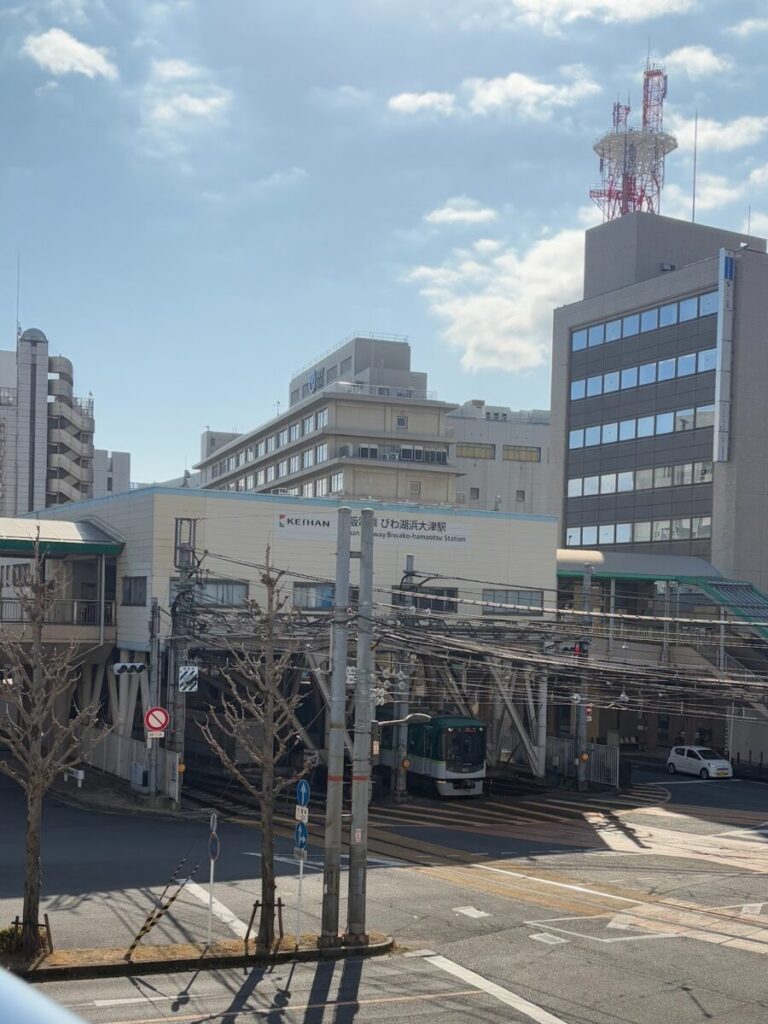 「びわ湖浜大津駅の路面電車の線路を見ると、いまだに新鮮で不思議な気持ちになります」