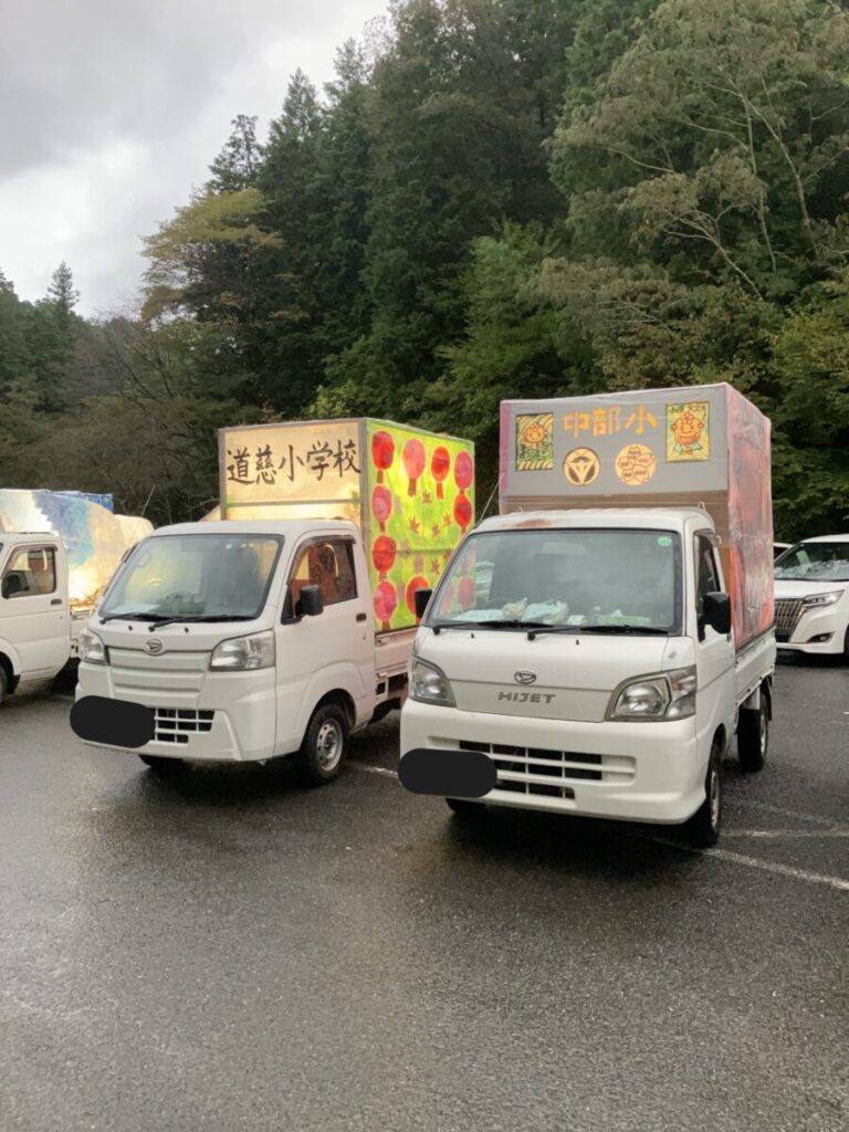 小学生たちが手掛けた軽トラあんどんは、校長先生が運転。わが子の作ったあんどんを写真に収める大人たちの姿も多く見られました。