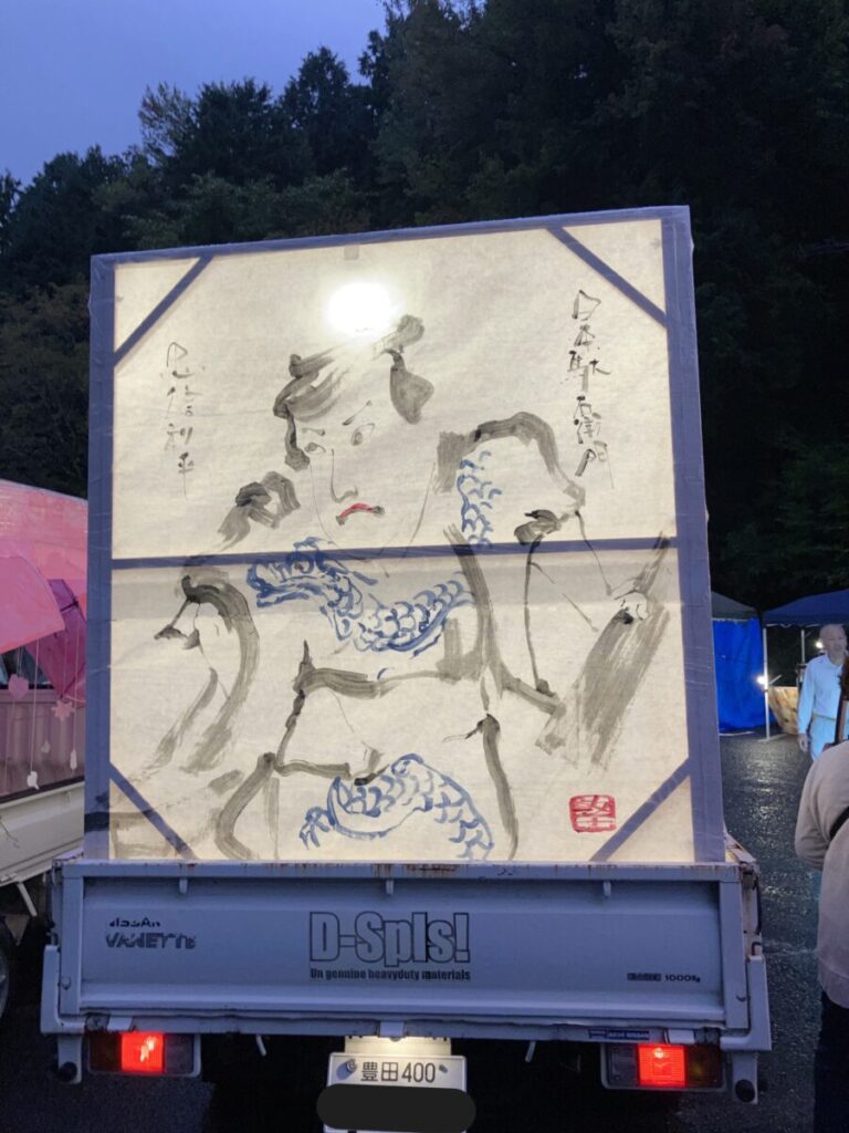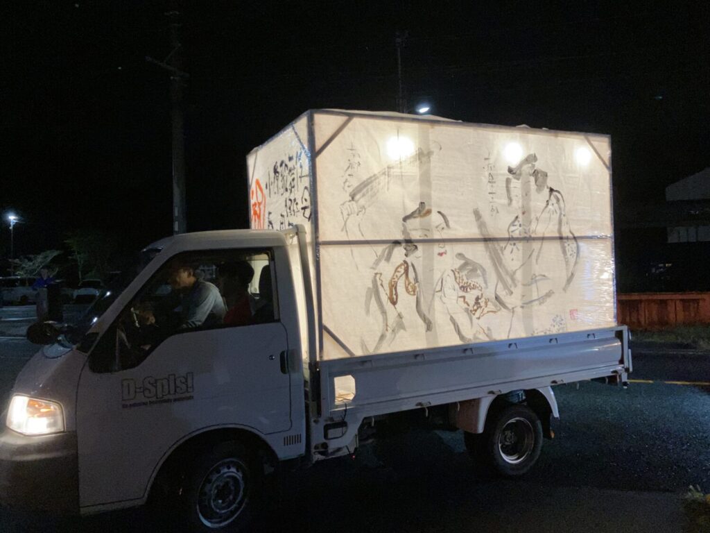 「小原に来て最初に実感したのが、どこの家にも軽トラックがあること。そして、小原には和紙がある。和紙が一番きれいなのは、灯りを通した時だと思ったんです。それで、和紙と軽トラックを組み合わせて「軽トラあんどん」というコンセプトをつくりました」