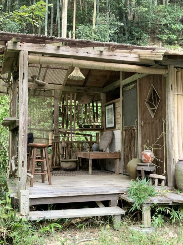 ほとんど一人で建てたという東屋。遊びに来るご友人たちにも人気の場所だそうです。