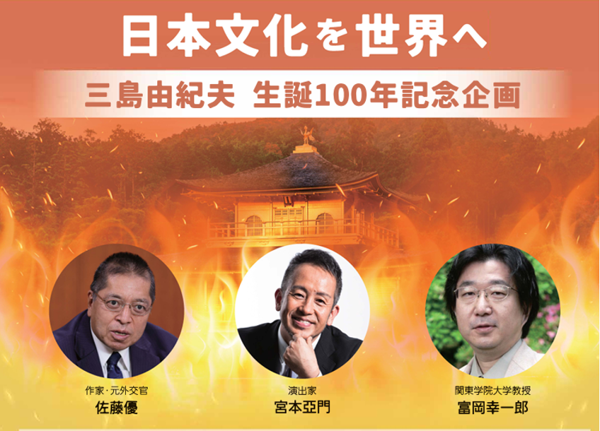 ゲストスピーカーは演出家の宮本亞門氏と作家、元外交官の佐藤優氏。宮本亞門氏は「金閣寺」はじめ、これまで三島作品を何度も舞台化してきたことから、興味深い三島由紀夫論を展開されることでしょう。また、佐藤優氏は作家の立場から、三島文学を独自の視点で評論されるものと思われます。
