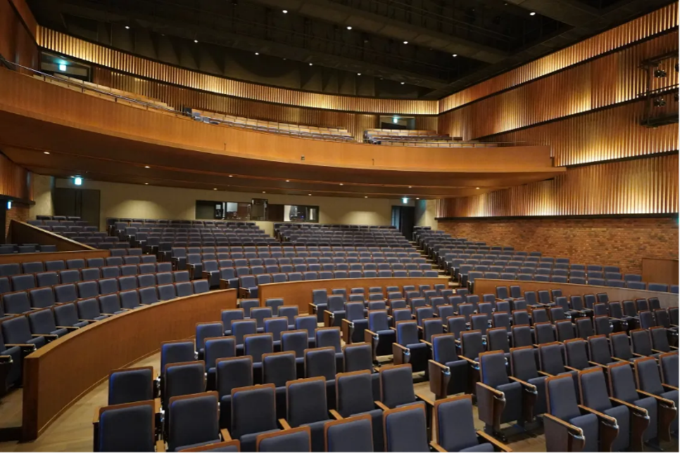 中区万代町1-1-1という住所からも、その一等地ぶりがうかがえます。そして、このキャンパスは大学生たちの学びの場にとどまらず、ビジネスマンから主婦の方々まで、市民にも広く開放されています。そのひとつがキャンパスの2階~3階に位置する、654人収容のテンネー記念ホールです。