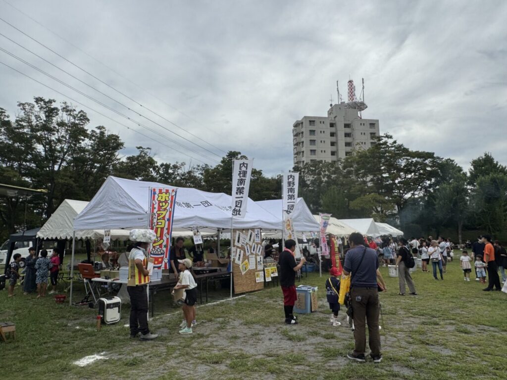 1984年、内野地区の町開きのタイミングで始まりました。まさに地元で自然発生したお祭りです。夏休み最後の思い出にと、8月末に土日2日間の夏祭りとして開催していました。最初は内野地区だけで始まり、やがて原山、高花に参加地域が広がっていきました。現在も7つの自治会・町内会・管理組合で構成された実行委員会によって運営しています。コロナ渦による2度の中止を経て開催した2022年からは、猛暑対策もあって秋の開催に変更しました。秋になって今年で4回目ですね。