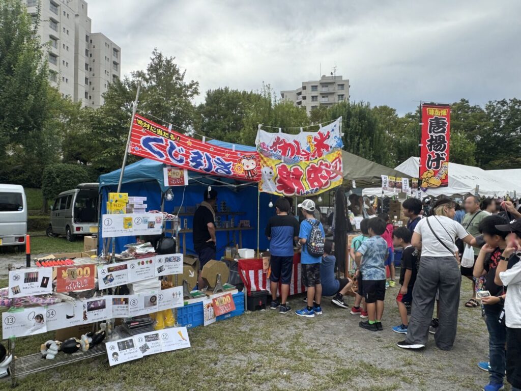 飲食はお好み焼き、たこ焼き、焼き鳥、焼きそば、ポップコーン、ケバブなど。さらに、子どもが大好きな射的やくじ引きなどのゲームもありました。ものすごい行列ができているお店もあり、お祭りはまさに大盛況です。