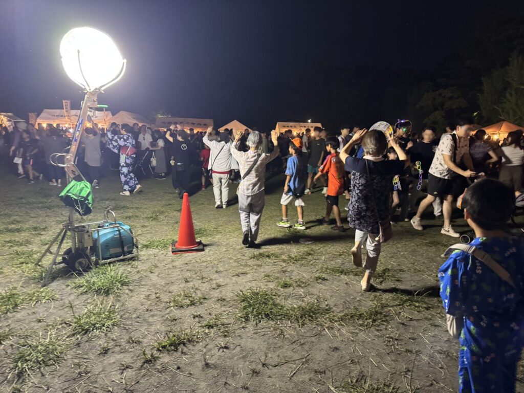 やがて太鼓の音と共に、盆踊りが始まりました。年配者の方々が間に入って踊っており、それを見ながら一緒に踊る子どもたちの姿が微笑ましく感じます。「印西音頭」という地元の踊り…私も実はこのお祭りで初めて知りました。