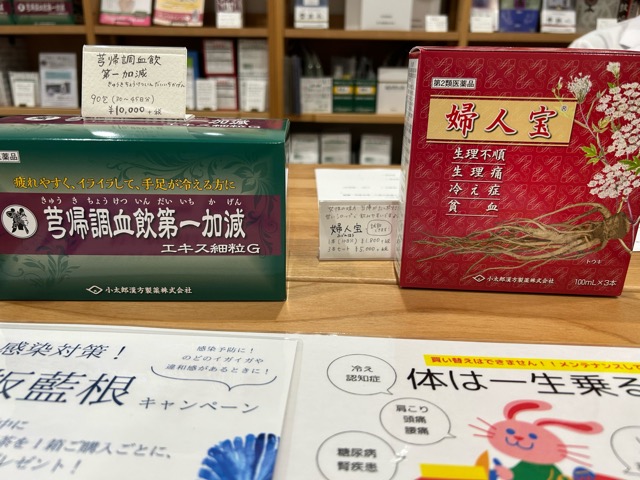 カウンセリングで私が提案された商品は、芎帰調血飲第一加減(きゅうきちょうけつだいいちかげん)と婦人宝(ふじんほう)の二つです。