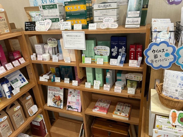 漢方一凛は、温かい空間の店内に商品がたくさんあります。