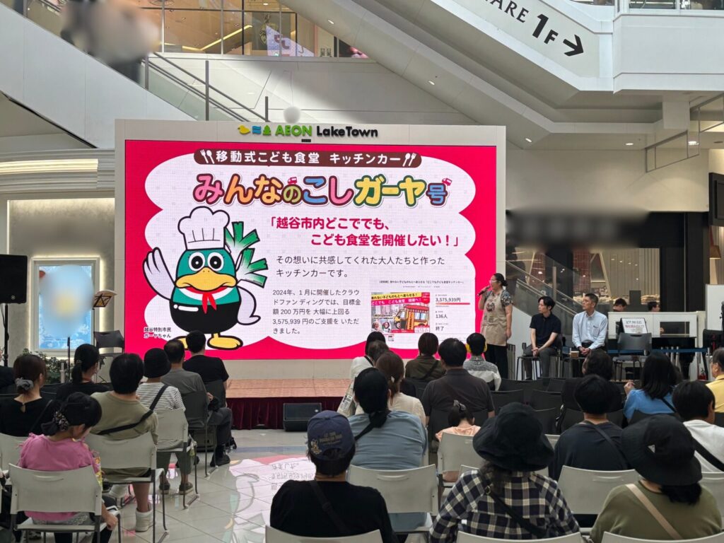 一般社団法人全国フードバンク推進協議会 × イオン株式会社 × 移動式こども食堂「みんなのこしガーヤ号」は、まだ食べられるのに捨てられてしまう食品を支援につなぐ仕組みを紹介。