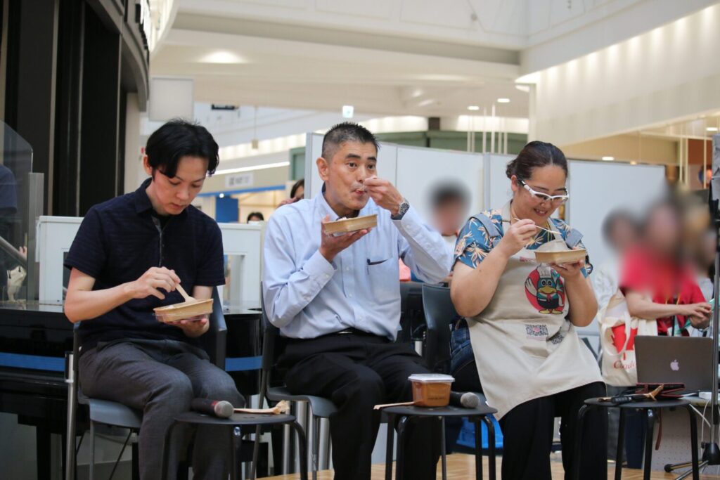 イオンアグリ創造は、地域農家との連携や規格外トマトを活用した商品開発を進め、アミュードは小分け調味料による「使い切り提案」や規格外野菜の商品化を発表しました。両社のコラボレーションから生まれた「トマトのぶっかけ麺ソース」や「ビーツドレッシング」も試食を交えながら披露。食材を使い切る提案が魅力的でした。