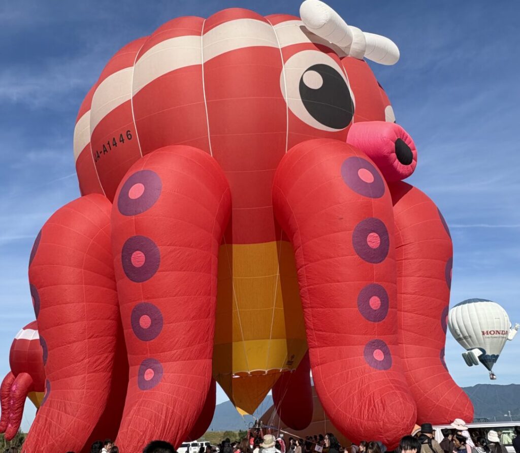 空へと吸い込まれるように、一機、また一機と離陸していく。会場からは歓声やシャッター音が響き、気づけば空は無数の気球で埋め尽くされていました。風に乗ってゆっくりと流れていくその光景は、ただのバルーンの打ち上げではなく、人と自然が呼吸を合わせて描くアートのような瞬間でした。