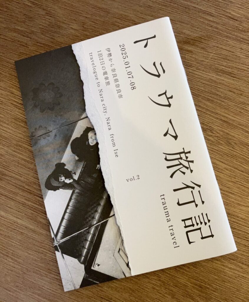2冊目『トラウマ旅行記vol.2 (奈良県奈良市)』は製本を印刷会社に依頼。納品されたZINEの表紙を自分たちで破ったと話します。
