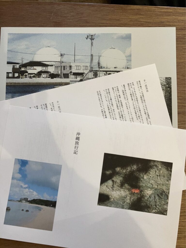 「表紙を破ることで、僕とヤギュウが覗くようになっています。それと、このZINEは中に現像した写真を挟み込んだんです。写真を取らないと文章が読めないようになっています。ちなみに、写真もそれぞれ違うものです。