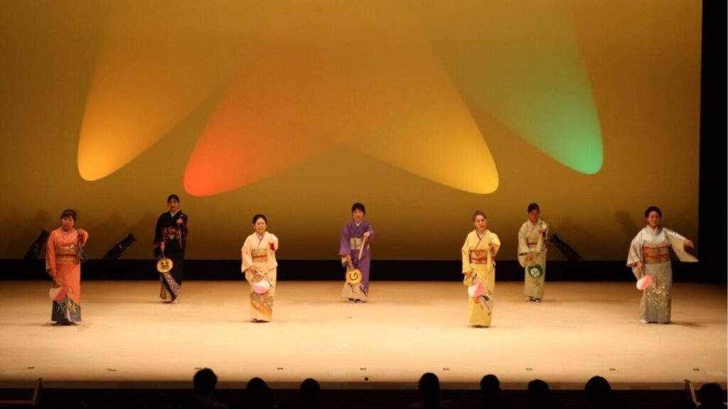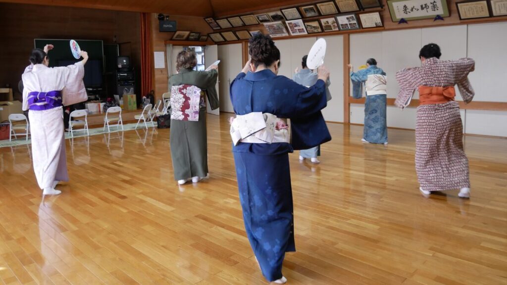 実際には、区民祭りなどの地域イベントで音頭を披露、小学校での指導、福祉施設等での訪問公演をしています。