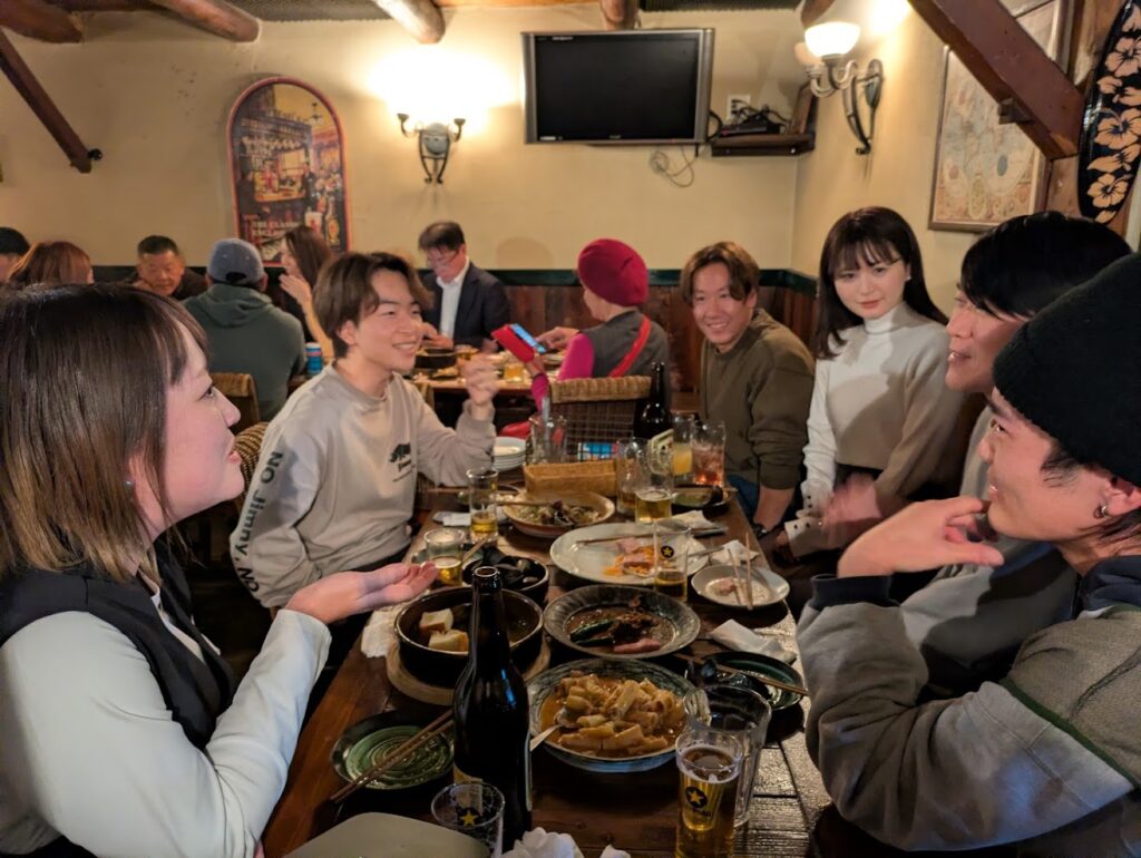 運営スタッフの方によると、普段の「つながってみたらどうだい?」は名刺交換から始まる「ビジネス交流会」という雰囲気が流れていることが多いそう。ですが今回のイベントは、翌日以降の展示会の前夜祭的な立ち位置であることも影響し、アウトドア市場に関わる経営者の方が多数参加しています。共通の趣味も多く、会場はビジネスライクな話はもちろん、プライベートなトークも大盛り上がりでした。