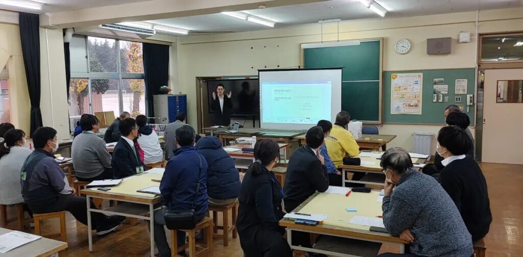T-KNITでは、コミュニティ・スクールの導入に向けて、地域住民への説明会を開催したり、また導入後のサポートもしています。