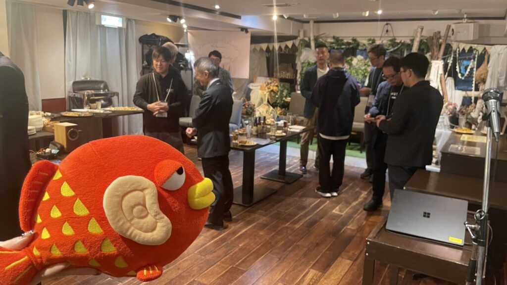 会場BGMを奏でていたのは、YouTube『通販の虎』で話題になった75歳の発明家による自作スピーカー。コンパクトながら立体的で、会話を邪魔しない心地よい音色が交流を盛り上げていました。