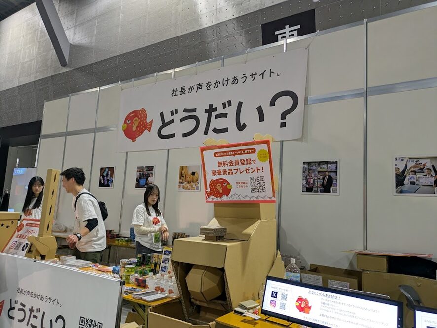 会場の一角には、中小企業の経営者が集まるコミュニティ「どうだい?」のブースもありました。どうだい?は大同生命が運営する経営者コミュニティサイトで、今年会員数が10万人を突破したという、右肩上がりに成長しているサイトです。