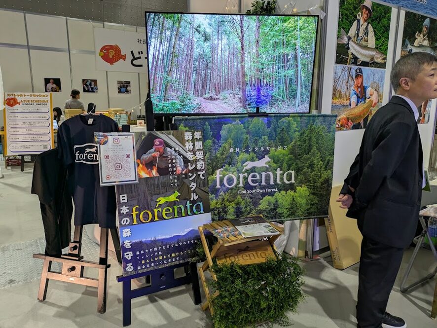 岐阜県の東白川村からは、森林レンタルサービス「forenta」がどうだい?ブース内に出展していました。forentaは、使い道がなく放置されている個人の山を、キャンプ愛好家に「自分だけの森」として貸し出すという革新的なサービスです。
