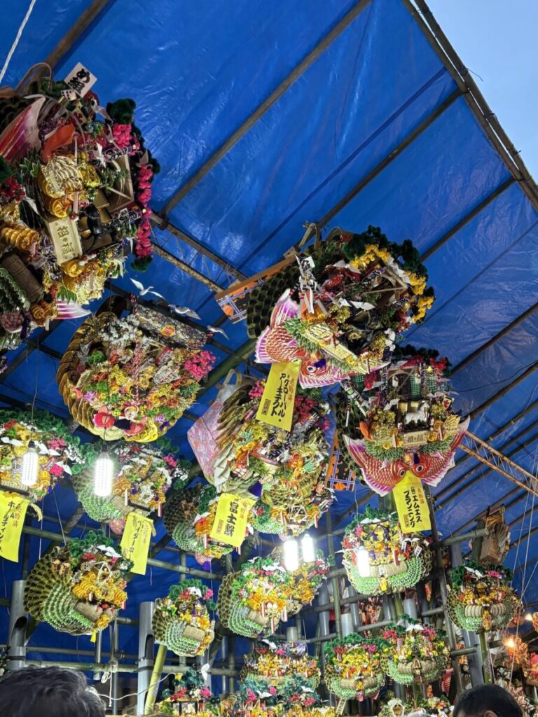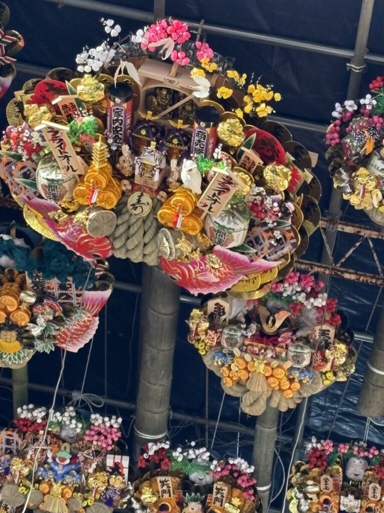 大きな熊手の迫力には、圧倒されます。ぜひ、頭上を見上げながら歩いてください。