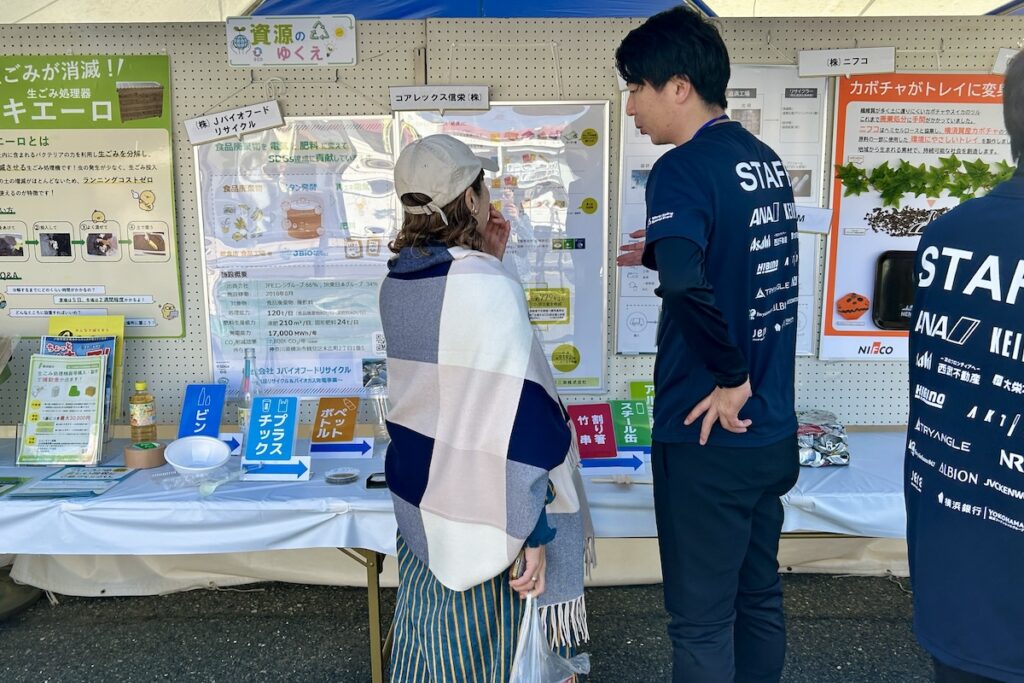 『ゴミゼロチャレンジ』として、会場から出されたゴミは、細かく分類回収され直接処理業者に運ばれてアップサイクルされると案内が。