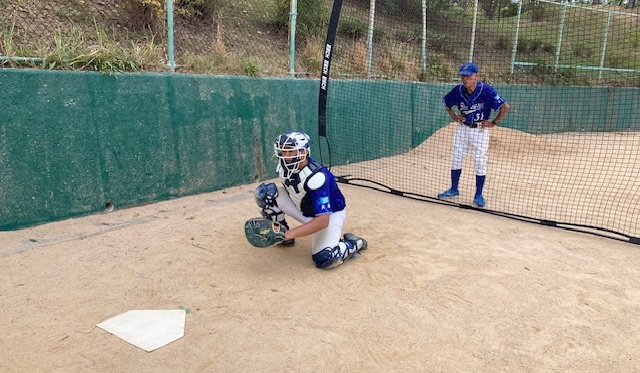 練習では、塁間の最短距離でベースを踏めるよう、マーカーを置いて具体的にイメージを示します。「本番はマーカーはないですけど、それを体で覚えるように反復練習しています」と語ります。