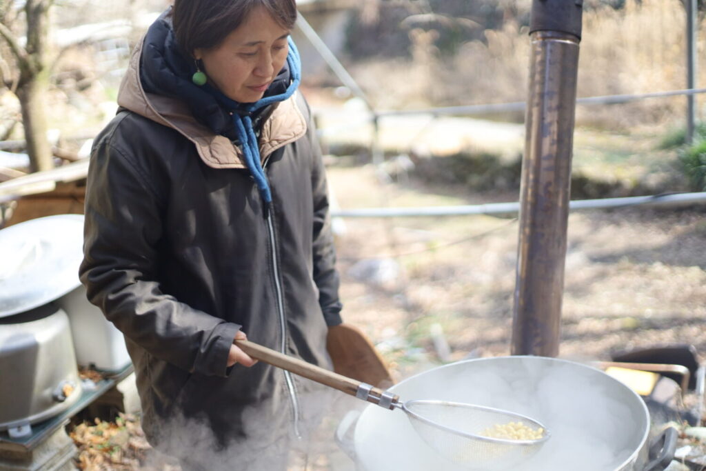 この日行われたのは、毎年恒例の味噌仕込みです。自然栽培のお米を作り続けている農家「うかのわ」の岡崎さんが約10年前に始めたのがきっかけです。