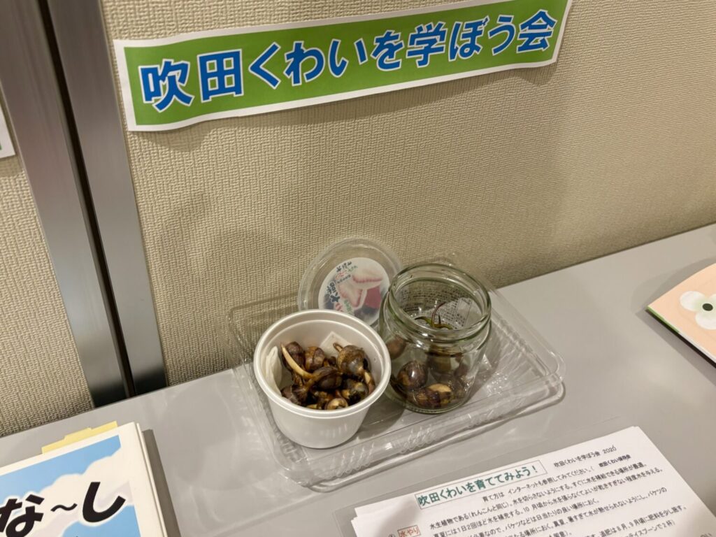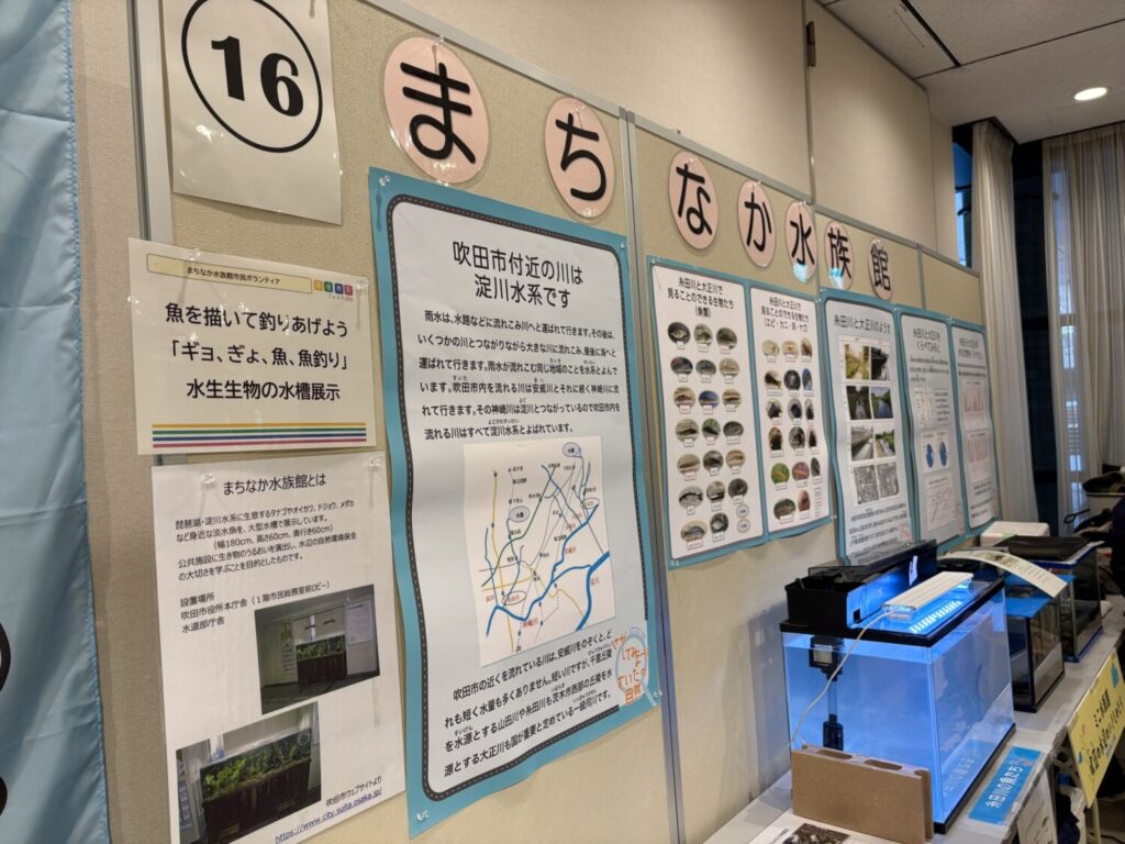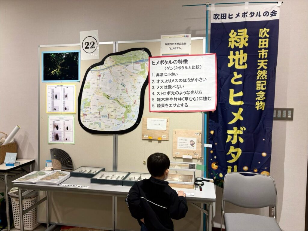 ほかにも、すいた市民環境会議のマツボックリ釣りや、吹田市の天然記念物ヒメボタルの展示など、吹田の自然に触れて学ぶことができるブースがたくさんありました。