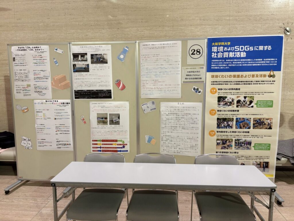 大阪学院大学の展示では、吹田くわいの保護と普及活動の様子などが展示されていました。