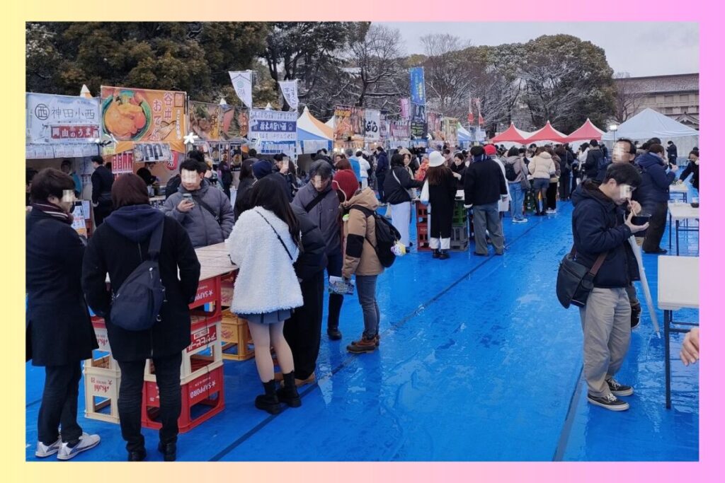 フードブースからは湯気が立ちのぼり、会場に温かい香りが広がっていました。