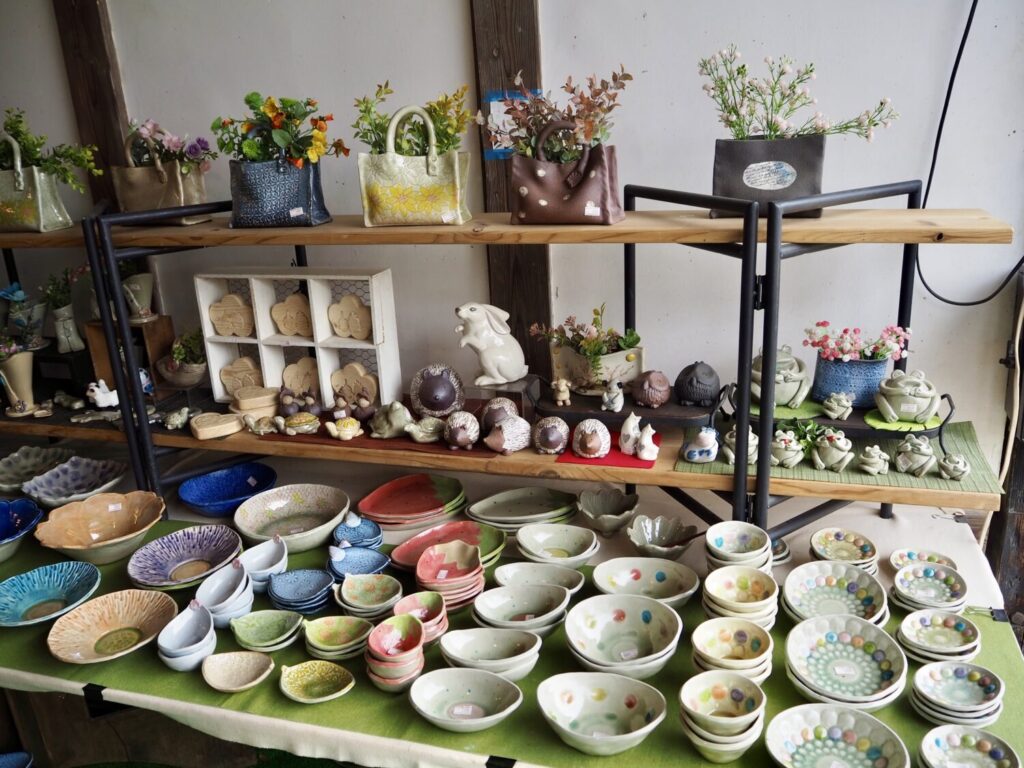 アルバさんが作る、カラフルな笠間焼が魅力的なお店です。日常使いできるお皿からカバンをモチーフにした花瓶など、伝統の中に新しい感性が光る陶器が魅力です。地図番号:B26