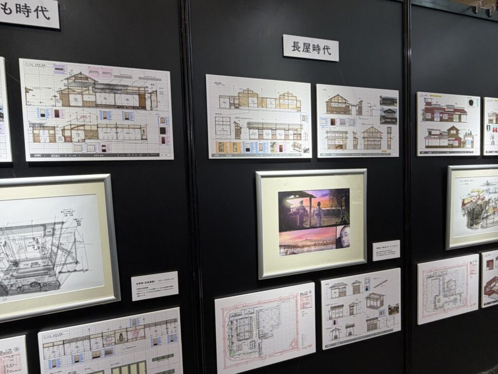 こちらは家の設計図です。子供時代・長屋時代・女中時代など、主人公の成長に合わせて住まいが変化していく様子が丁寧に図面化されていました。実際にそれに合わせた家が建てられて、その中で物語が紡がれていたのです。