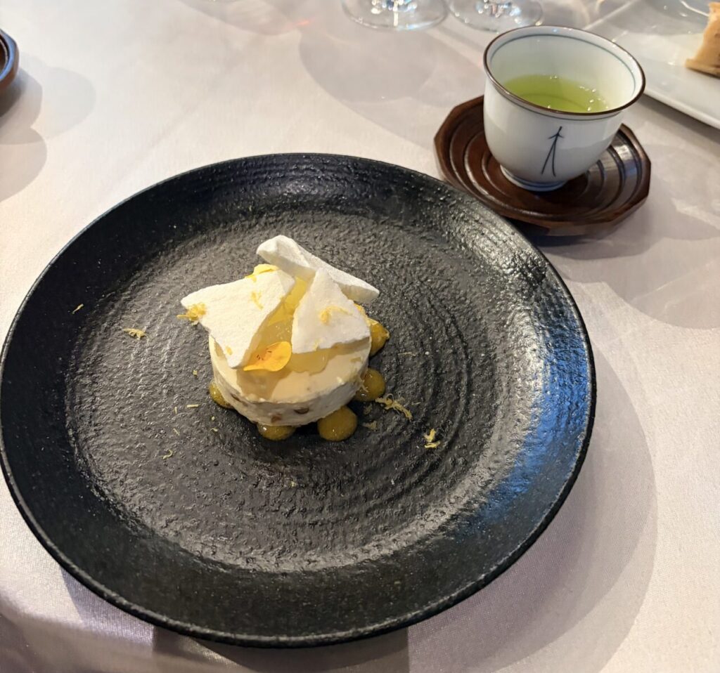 爽やかな文旦の香りとリコッタチーズの軽やかなコク、そしてキレのある鹿児島茶でコースを鮮やかに締めました。ちなみに、鹿児島県は生産量全国第一位のお茶の名産地でもあります。
