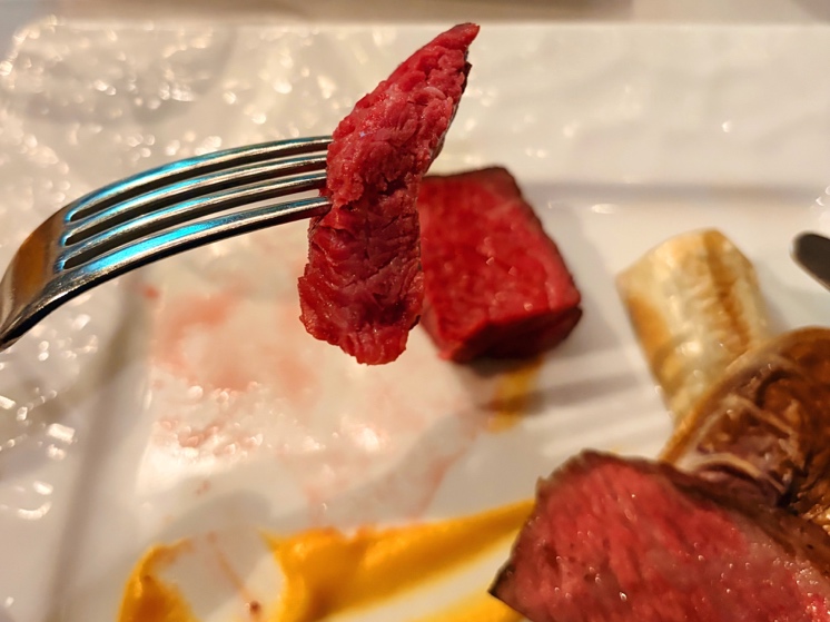 ほぼレアの状態でいただいたヒレは、心地よい歯応えがありながらも柔らか。噛み締めるほどに甘みが際立ち、鹿児島県産和牛のクオリティの高さを改めて実感しました。