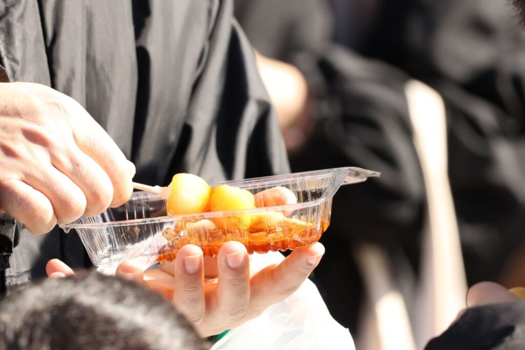 みたらし団子とコーヒーのマリアージュはなかなか味わえるものではありません。赤飯やいなりの販売もあり、コーヒーを楽しむ人の胃袋も満たしていました。