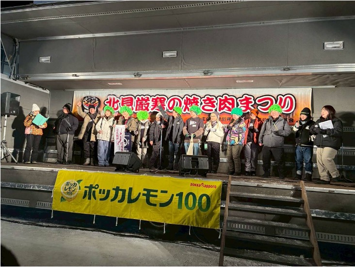 なお、スタンプラリー受賞者で「北見厳寒の焼肉まつり」に参加された方々には、まつりのメインステージでの授賞式も行なわれました。