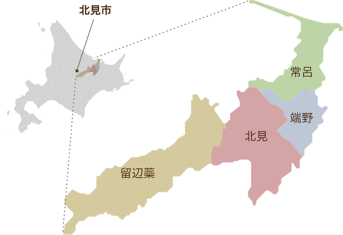 北見市は北海道の東部に位置し、人口約11万7千人のオホーツク圏最大の都市。面積は1427.41平方キロメートルで、東京都の約65%、香川県の約76%に相当し、東西に延びる道路の距離は約110kmで、東京駅から箱根までの距離にあたります。北方領土内を除く国内の地方公共団体では4番目、北海道内では1番の広さを誇ります。