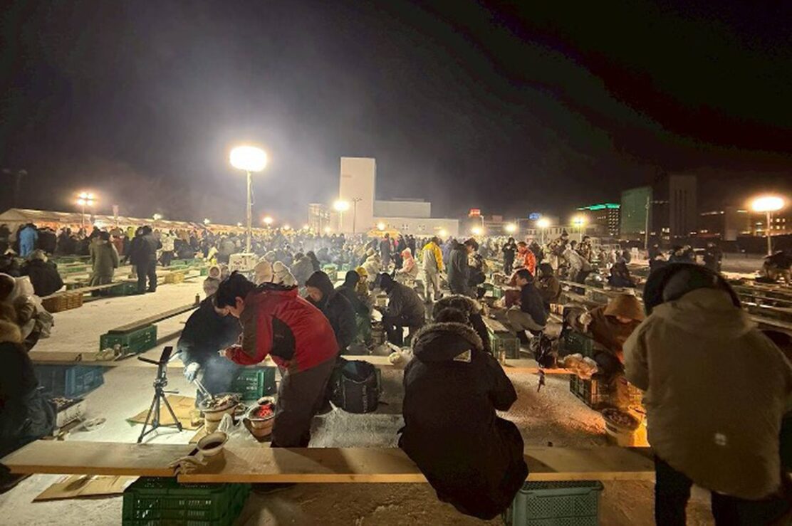 「北見厳寒の焼肉まつり」はその名の通り、 マイナス10度という厳寒の中、焼肉を食べる祭り。場所はもちろん屋外で、北見駅に程近い「NICC芸術文化ホール」の駐車場が特設会場。