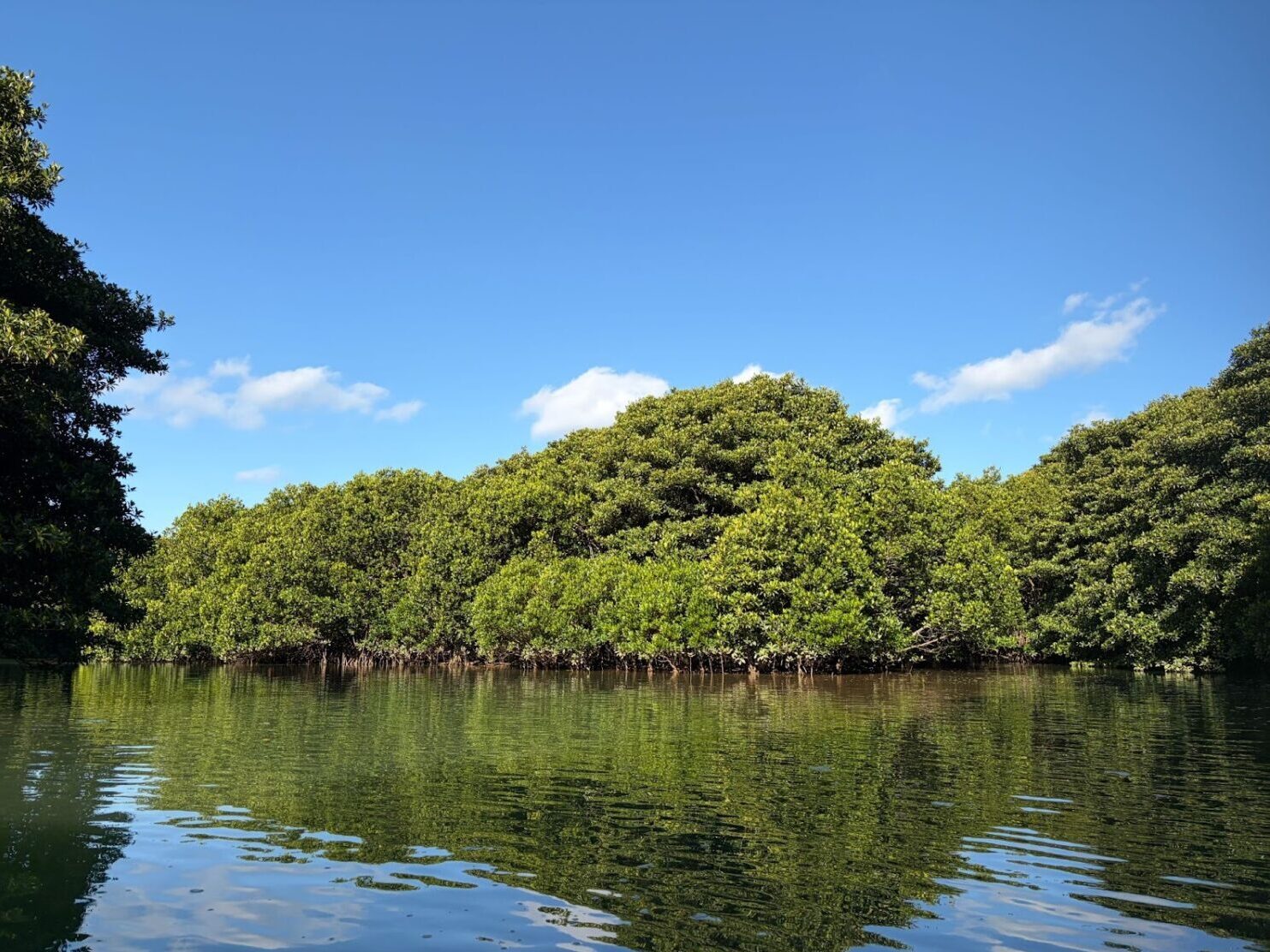 お天気に恵まれた日にカヌーを体験でき、大自然の中、気軽に冒険気分を味わうことができました。青い空、濃い緑のヒルギ林、そして川の水のちゃぷんという音、動植物に癒されたあっという間の1時間でした。